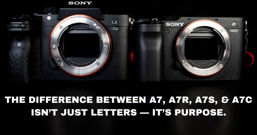 If you’ve been stuck deciding between A7, A7R, A7S, or A7C, this guide breaks everything down in a simple and practical way so you can make the right choice. The difference between A7, A7R, A7S, and A7C isn’t just letters “it’s purpose”.